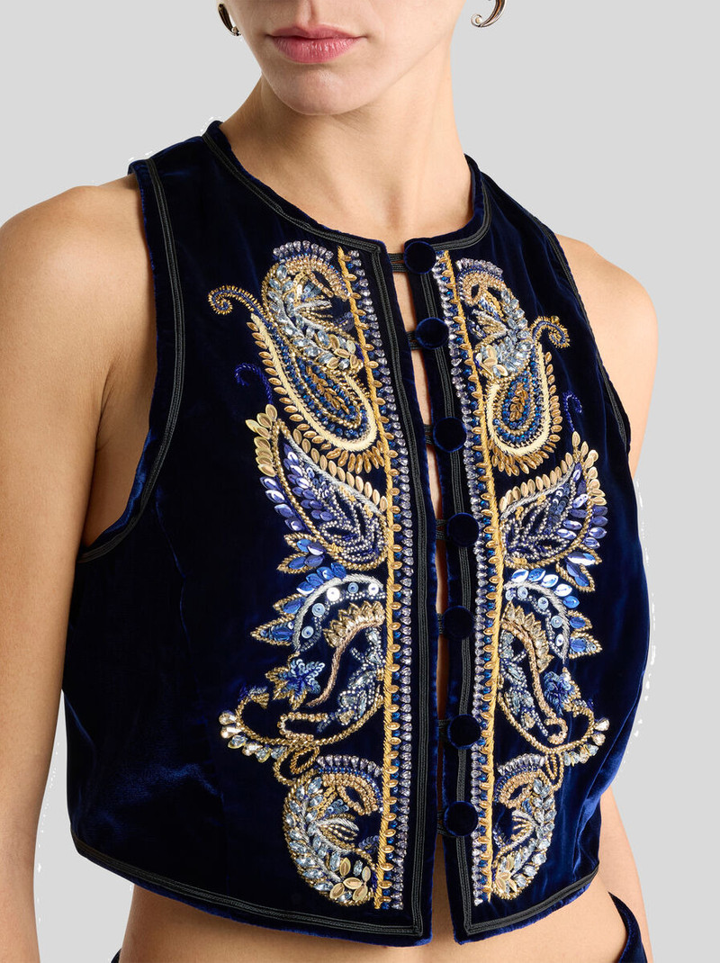 Explore the unparalleled craftsmanship of Etro gilets & vests, an essential segment of our exclusive women’s clothing collection. Each Etro piece is designed with luxurious fabrics and distinctive patterns, embodying a perfect blend of contemporary elegance and timeless sophistication.