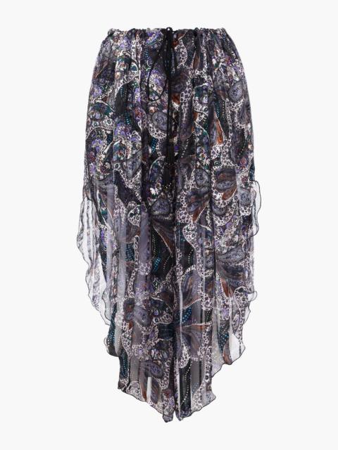 Ruffled paisley-print silk crepe de chine maxi skirt