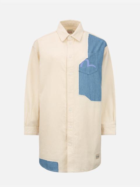 TEAR-OFF DESIGN FABRIC BLOCKING CORDUROY SHIRT DRESS