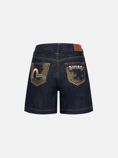 Elevate your summer style with EVISU shorts, a standout in our women's clothing collection. These shorts embody the brand's iconic blend of streetwear and premium fashion, ensuring both comfort and trend-setting appeal. Explore our curated selection of EVISU shorts, each piece featuring unique designs and exceptional craftsmanship. Whether for casual outings or chic weekend getaways, our collection promises to keep you looking effortlessly stylish.