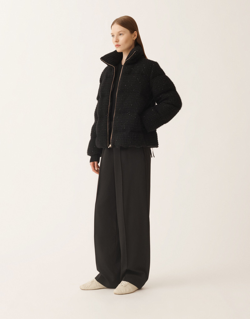 Down jacket in wool and silk with sequins