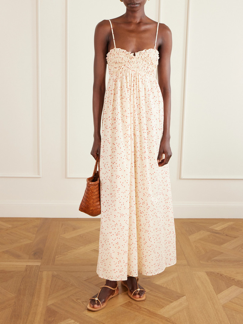Presa Shirred Ruffled Polka-dot Cotton-voile Maxi Dress