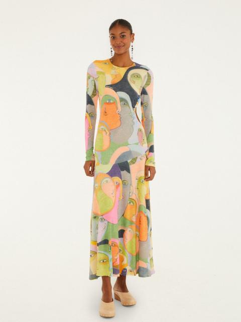 Crowded Series Drawing Long Sleeve Midi Dress