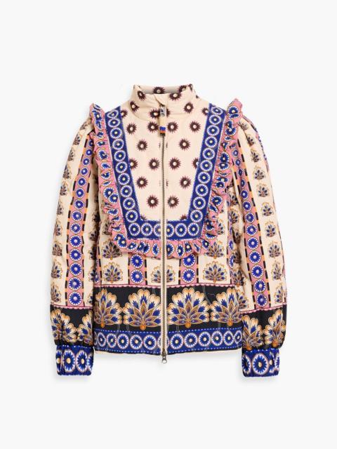 Ruffled floral-print padded shell jacket