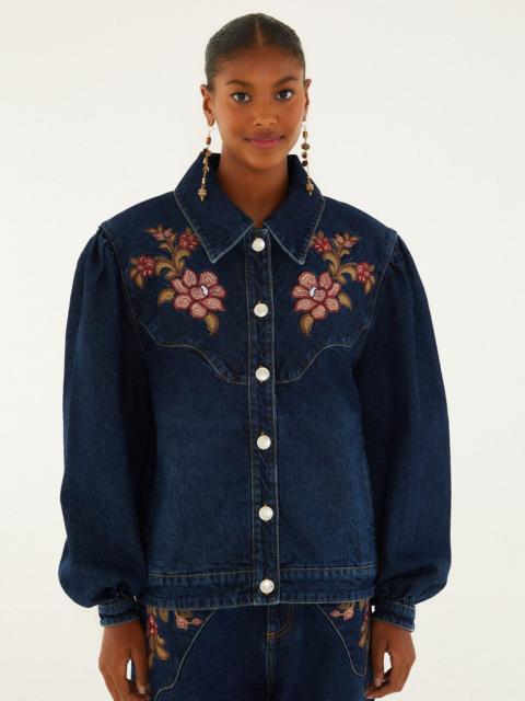 Denim Flower Embroidery Jacket