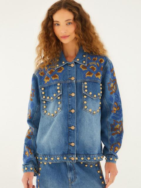 Denim Metal Details Embroidered Jacket
