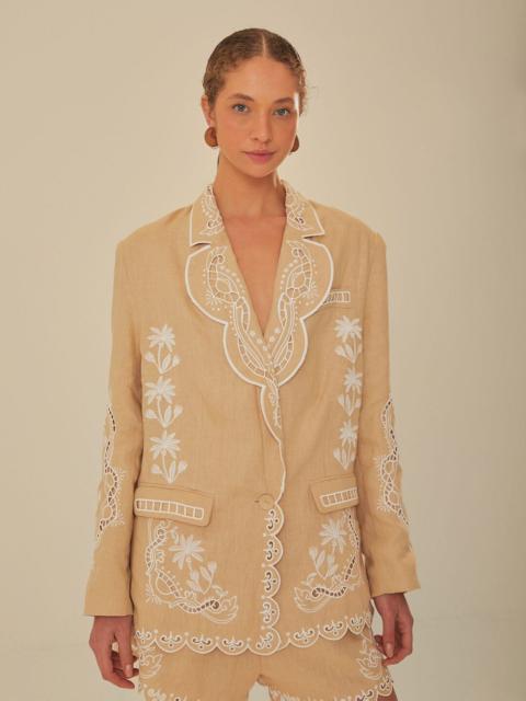 Khaki Embroidered Euroflax™ Premium Linen Blazer