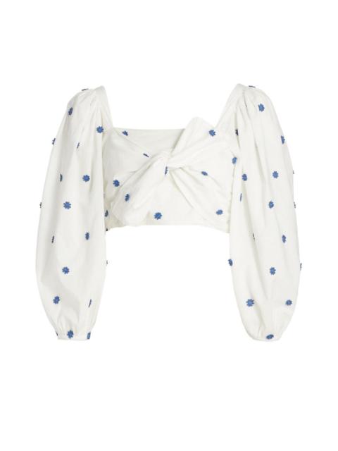 Flower-Embroidered Cotton Crop Top