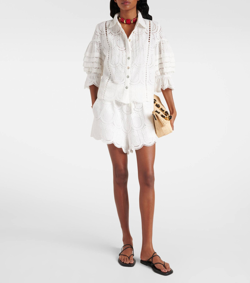 Off-White Sea Garden Ruffled Long Sleeve Blouse