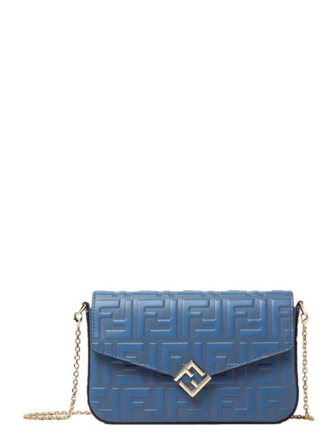 Fendi Women Blue Mini Bag With Chain-Link Shoulder Strap And All-Over Ff Embossed Motif In Leather W