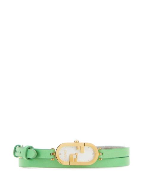 Fendi Women Mint Green Leather O Lock Vertical Watch