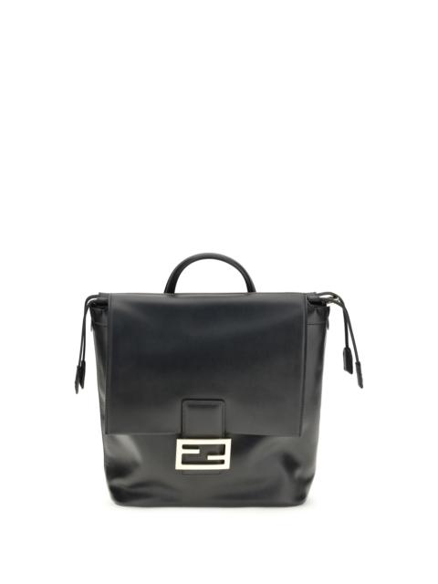 Fendi Leather Backpack With Metal Ff Logo Detail