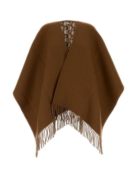 Fendi Women Biscuit Wool Blend Reversible Cape