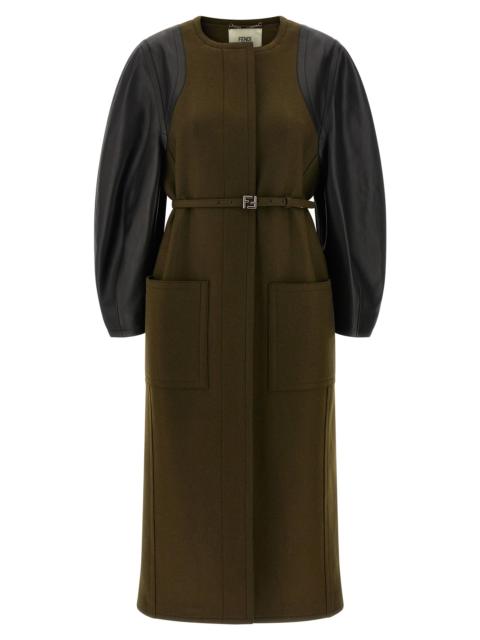 💥Fendi Wool Fur Collar Long Coat Jacket