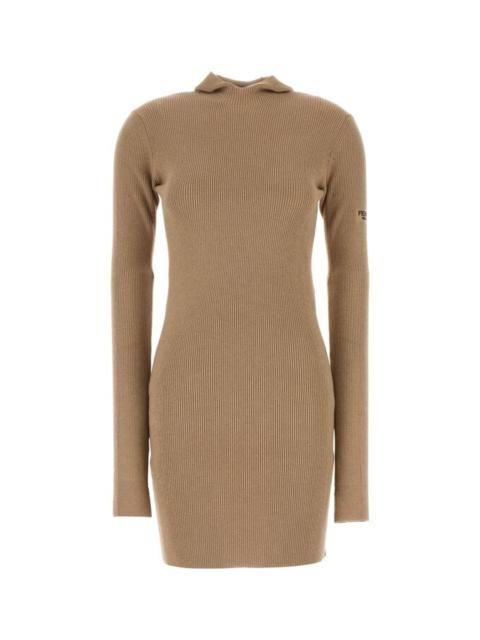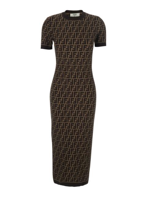 Fendi Women Brown Crewneck Dress With All-Over Ff Motif In Cotton Blend Woman