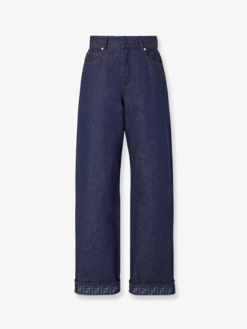 Fendi Blue Denim Jeans With Ff Detail On The Bottom