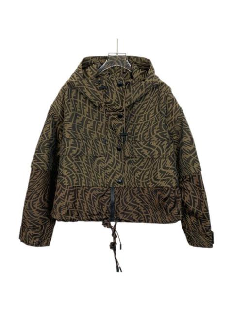 Fendi Dark Brown Monogram Print Hooded Cotton Jacket