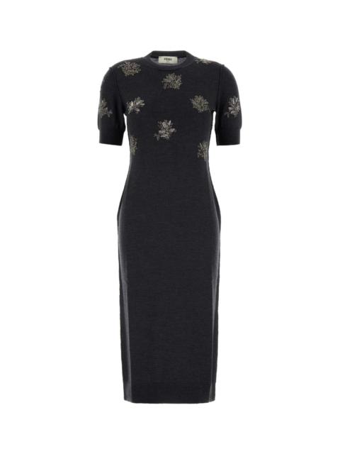 Fendi Logo Pattern Midi Drape Wool Skirt