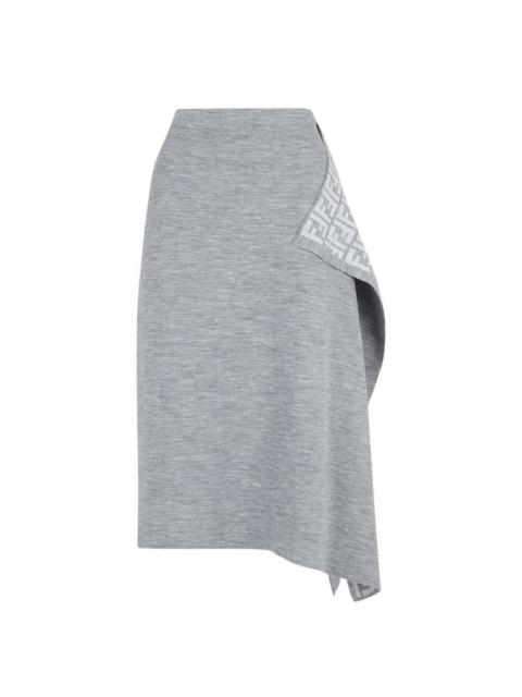 Fendi Logo Pattern Midi Drape Wool Skirt