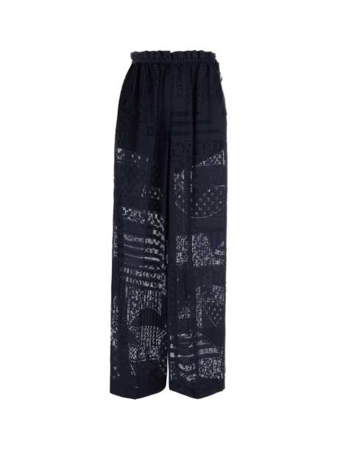 Fendi Blue Silk Trousers With Patchwork Print Women