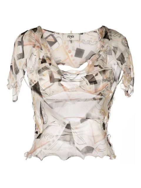 Fendi Big Brown Logo See Tru Mesh T-shirt