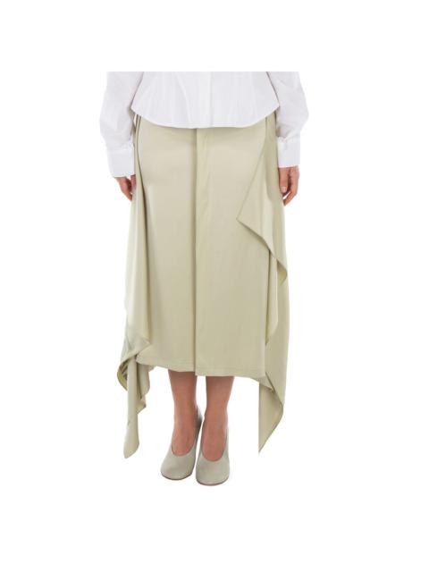 Fendi Logo Pattern Midi Drape Wool Skirt