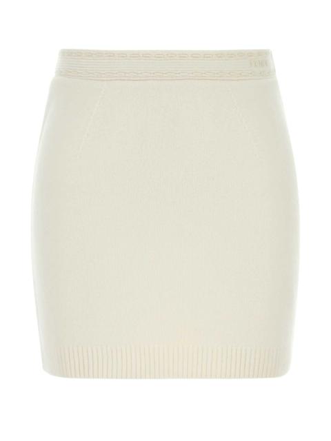 Fendi Women White Cashmere Blend Mini Skirt