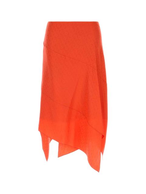 Fendi Women Midi Orange Skirt With Knot And Fendi Labyrinth Motif In Silk Woman