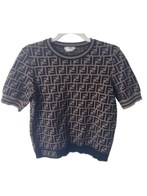 Fendi Roma Womens FF Logo Knit Top In Brown & Black Size 44 Made In Italy Short