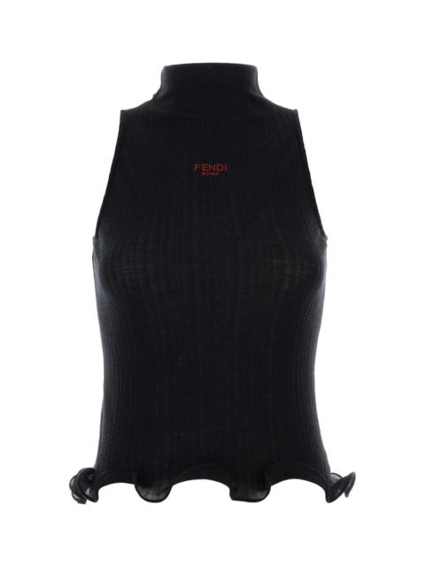 Fendi Women Grey Ribbed Jersey Embroidered Tank Top