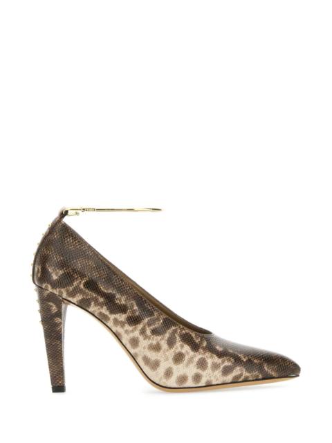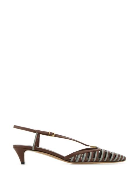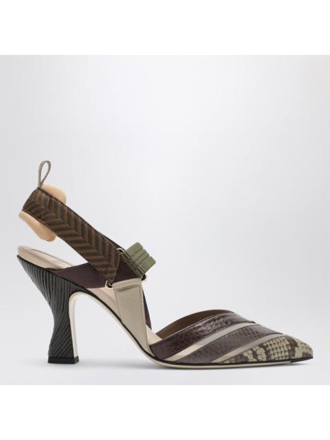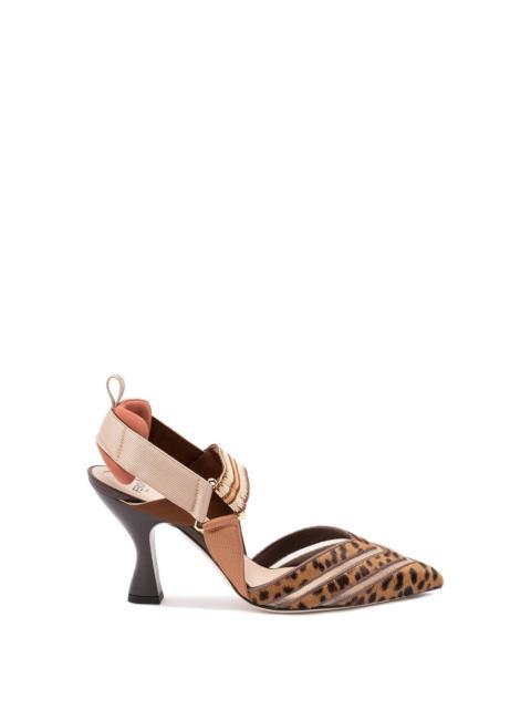 Fendi Women Brown Slingback Pumps With Square Toe And Animalier Motif In Leather Woman