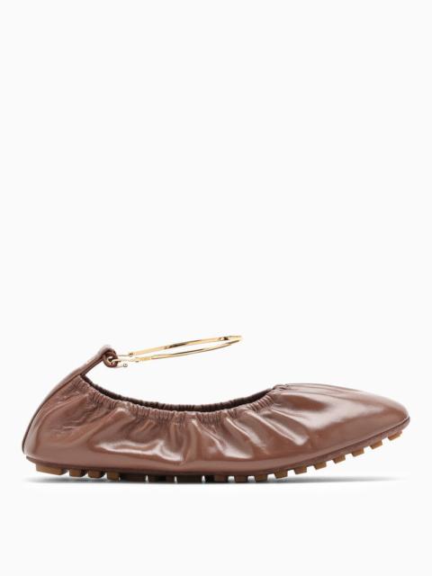 Fendi Women Black Ballerinas With Curled Heel And Ff Logo Plaque On The Strap In Leather Woman