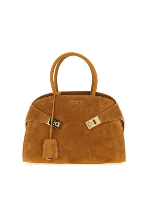 Ferragamo Camel Suede Medium Handbag
