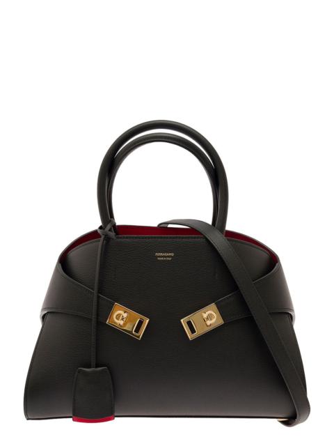 Ferragamo Women 'Hug M' Black Handbag With Logo And Gancini Buckle In Leather Woman