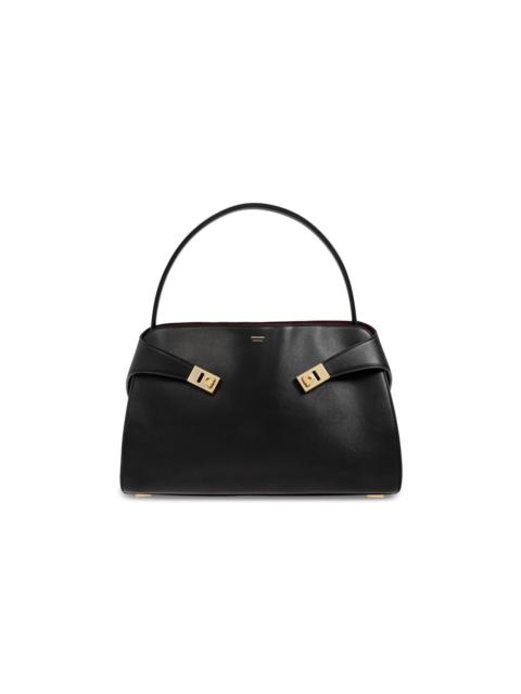 FERRAGAMO Hug Medium Black Leather Top Handle Bag New