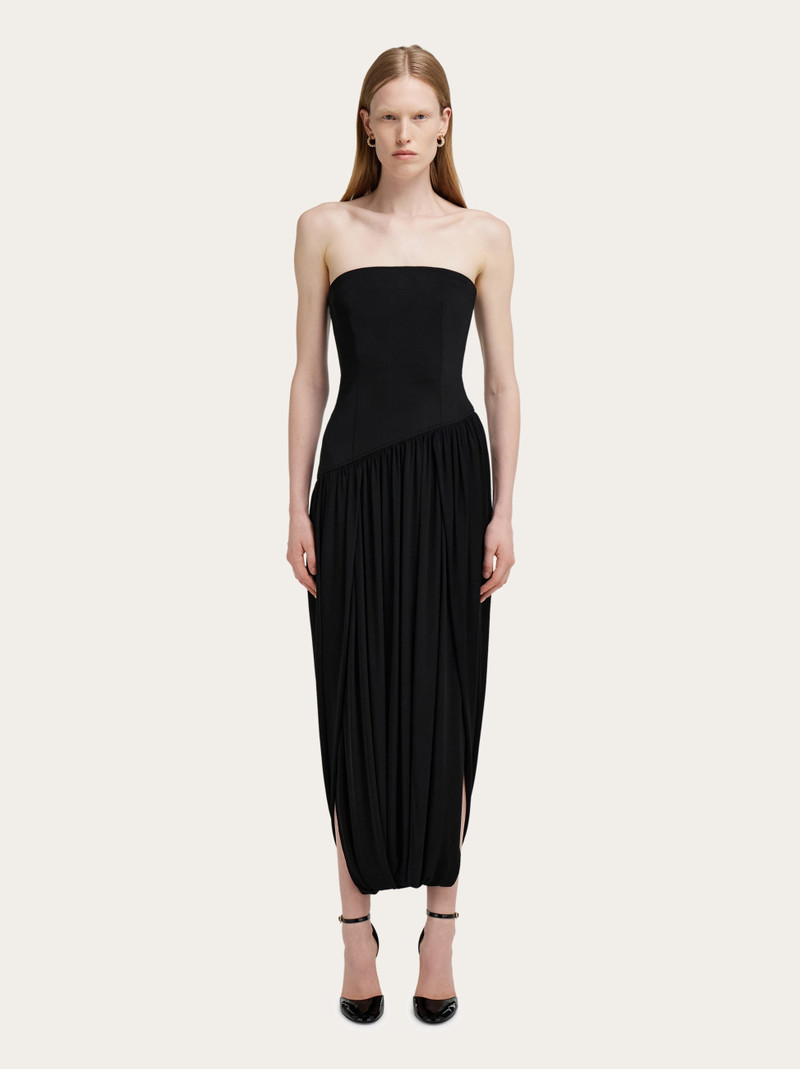 Embrace the timeless allure of Ferragamo dresses, a standout feature in our luxurious women's clothing lineup. Each Ferragamo piece is a testament to refined craftsmanship, blending classic Italian elegance with contemporary design. Our exclusive collection of dresses is crafted to perfection, featuring sumptuous fabrics and meticulous detailing that cater to the sophisticated woman.