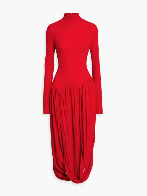 Draped stretch-jersey turtleneck maxi dress