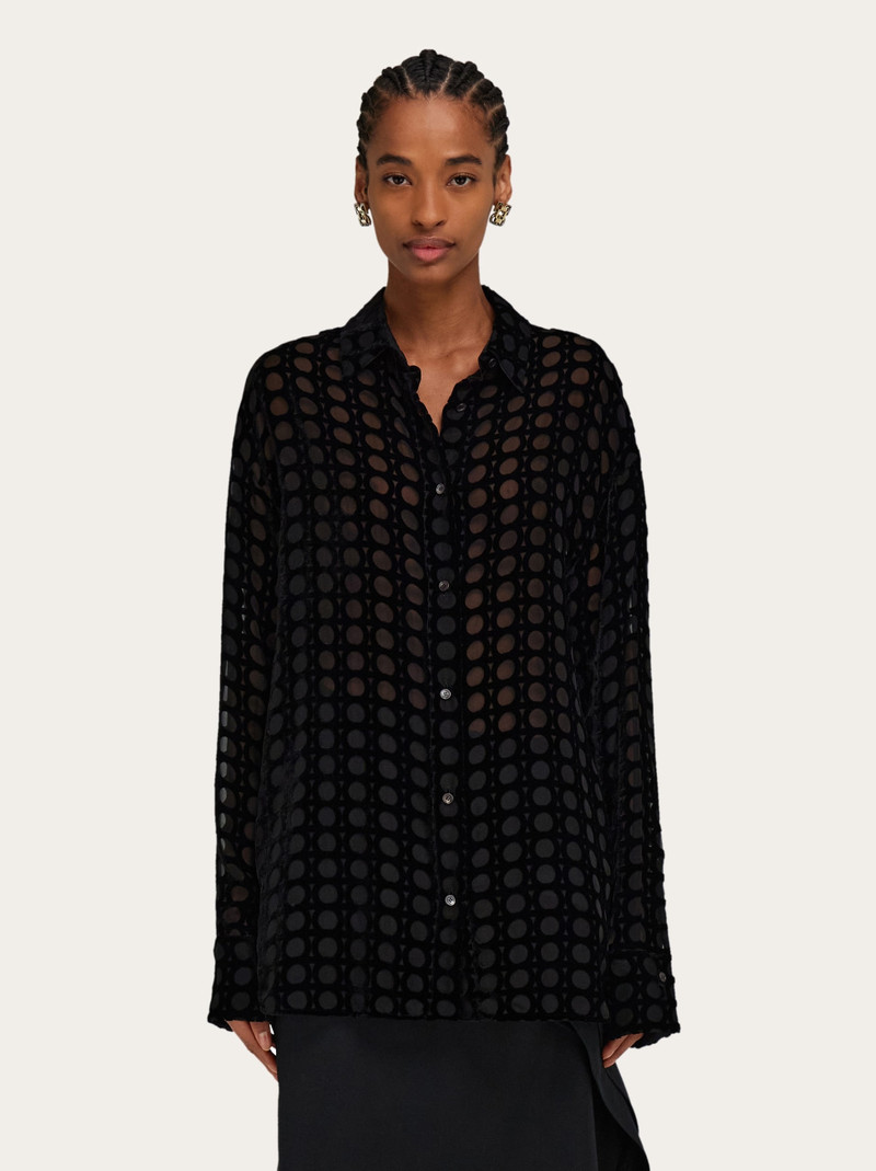 . Each Ferragamo top embodies timeless elegance and modern sophistication, crafted with luxurious fabrics and exquisite detailing.
