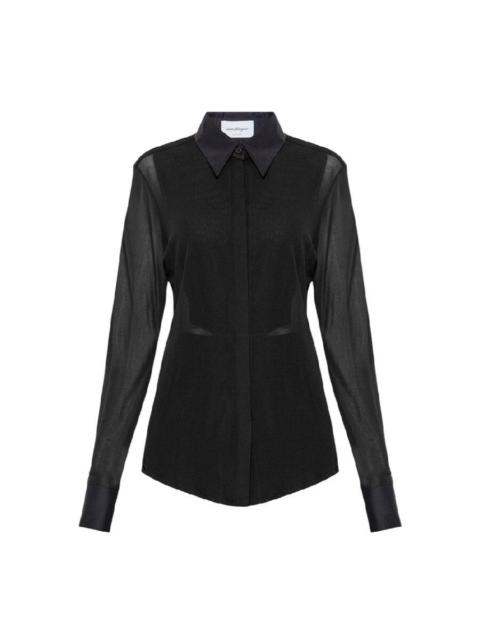 Ferragamo Semi Sheer Long Sleeve Shirt, Brand Size 42 ( US Size 8 )