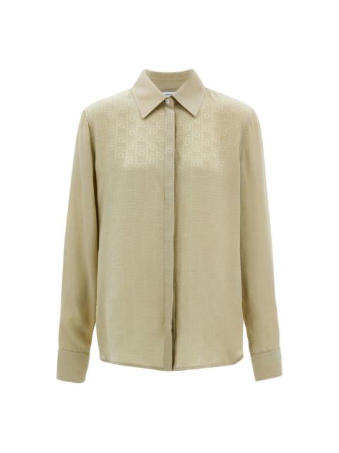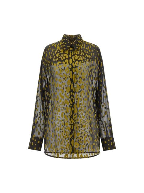 FERRAGAMO Georgette Devore Dots Brown Silk Shirt New And Aut