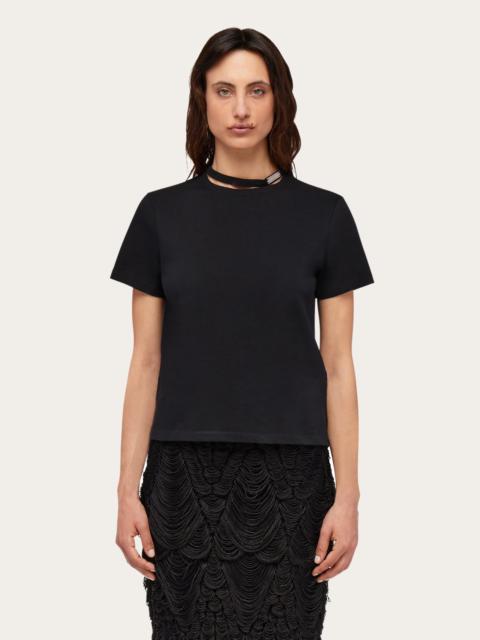 . Each Ferragamo top embodies timeless elegance and modern sophistication, crafted with luxurious fabrics and exquisite detailing.