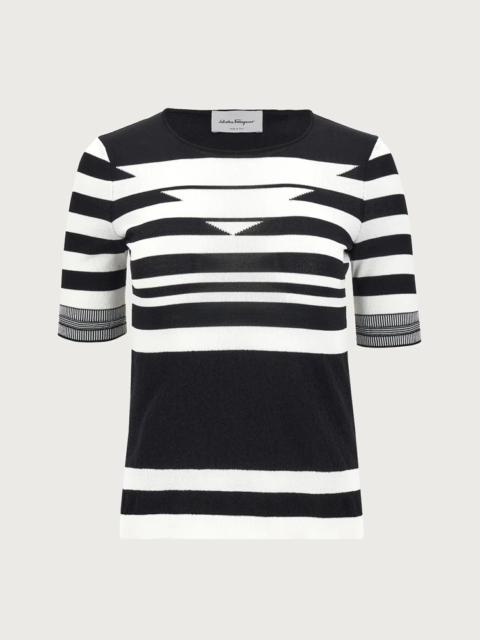 SHORT SLEEVED TOP WITH SILK INLAYS