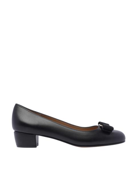 Ferragamo Women 'Vara 2.0' Black Pumps With Low Block Heel And Logo Plaque On The Front In Leather W