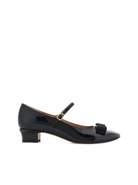 Ferragamo Women 'Vara' Black Pumps With Low Block Heel And Logo Plaque On The Front In Leather Woman