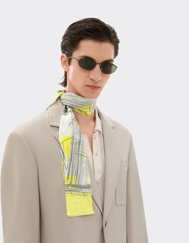 Jacquard silk foulard with brushed print