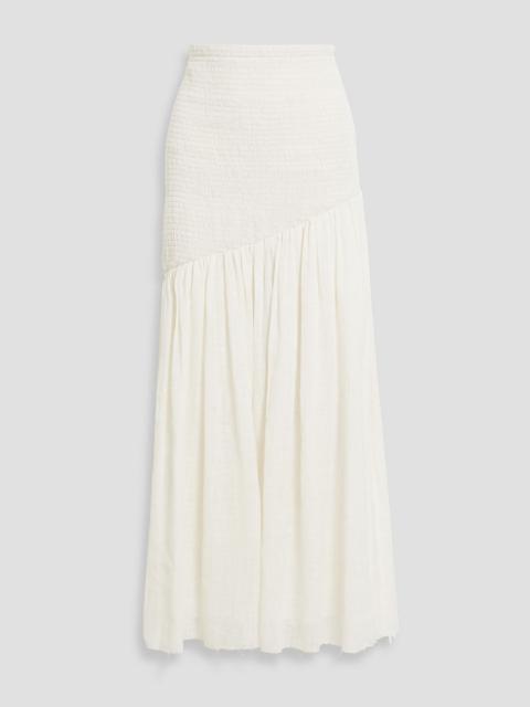 Maxwell shirred linen and silk-blend gauze midi skirt