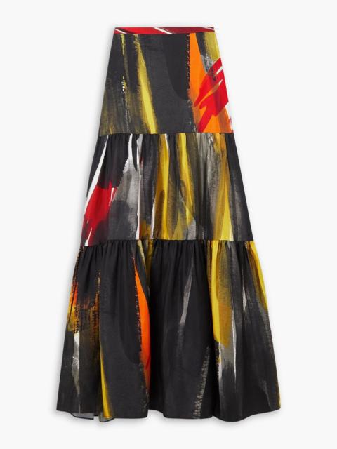 Morse printed tiered silk-twill maxi skirt