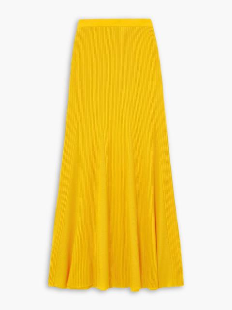Eula ribbed and pointelle-knit merino wool maxi skirt