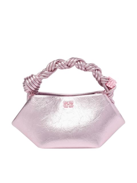 Ganni Medium Bou Green Shoulder Bag With Crocodile Leather Effect And Logo Plaque In Leather