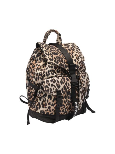 Ganni Women Brown Tote Bag With Graphic Print On The Front And All-Over Leopard Motif In Cotton Woma